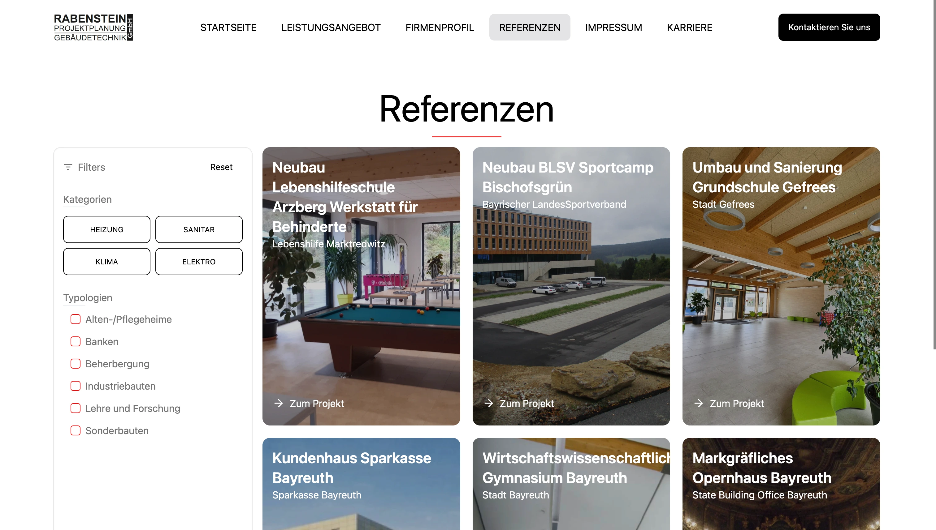 Developed a website with a custom CMS for IB Rabenstein, an engineering and consulting firm specializing in building technology. Implemented dynamic content management to showcase their consulting services and projects. The site emphasizes professionalism and credibility, fostering Albin Studio ® trust through a sleek and informative interface.