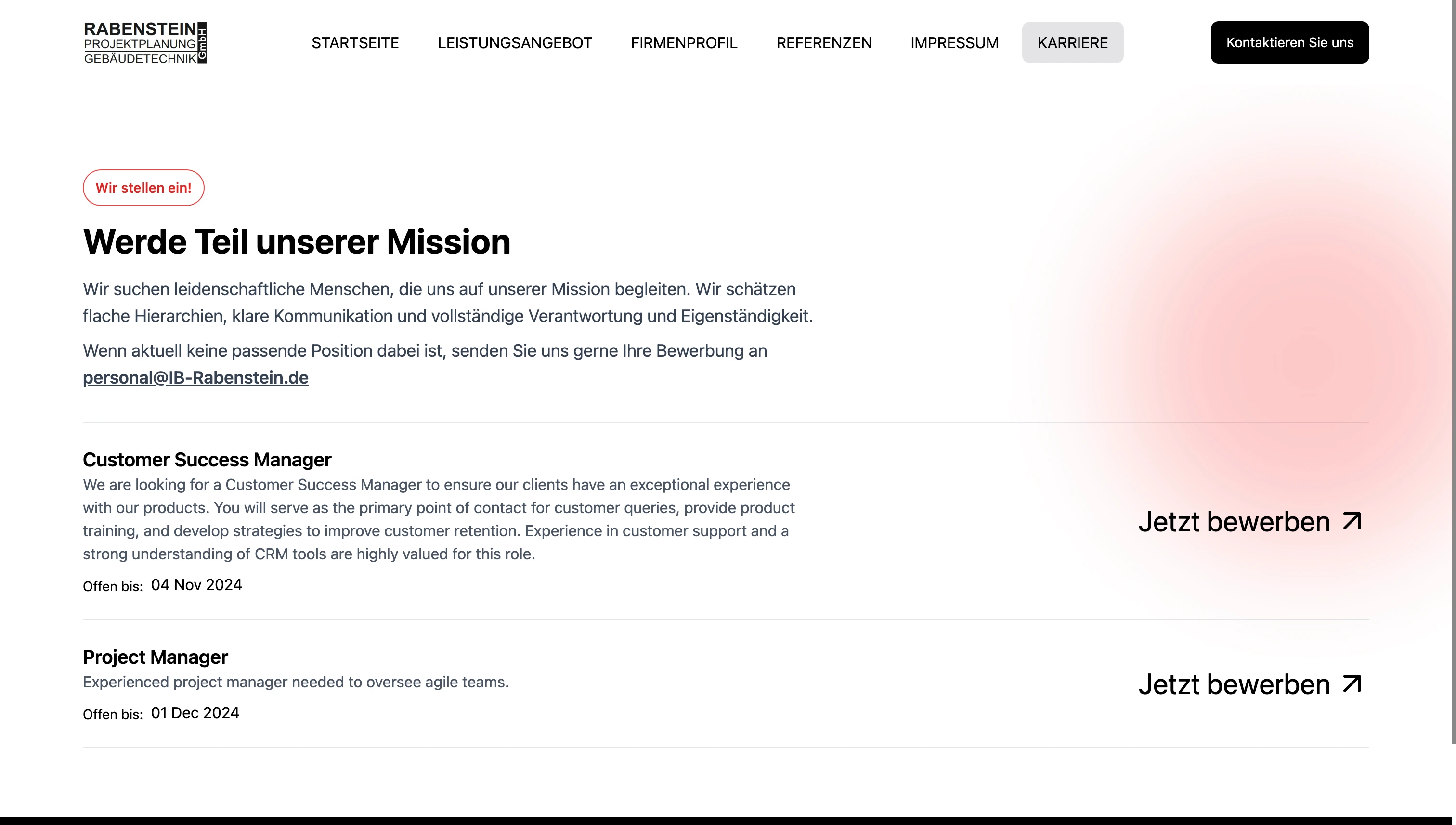Developed a website with a custom CMS for IB Rabenstein, an engineering and consulting firm specializing in building technology. Implemented dynamic content management to showcase their consulting services and projects. The site emphasizes professionalism and credibility, fostering trust through a sleek and informative interface.